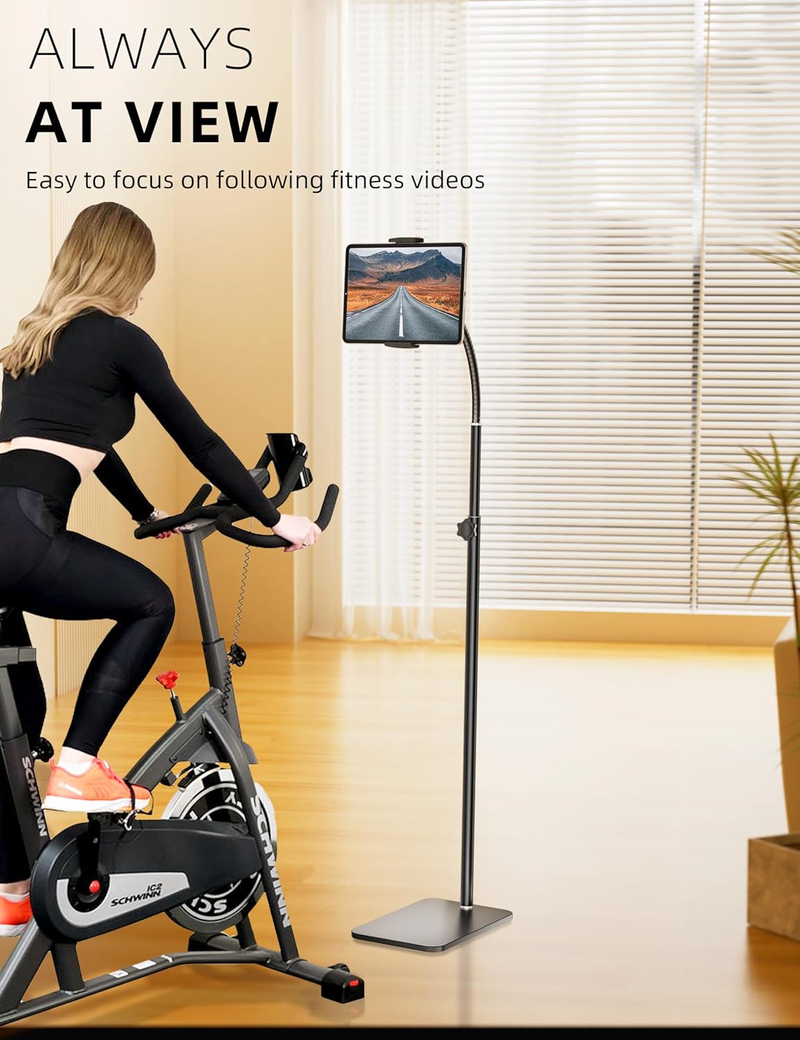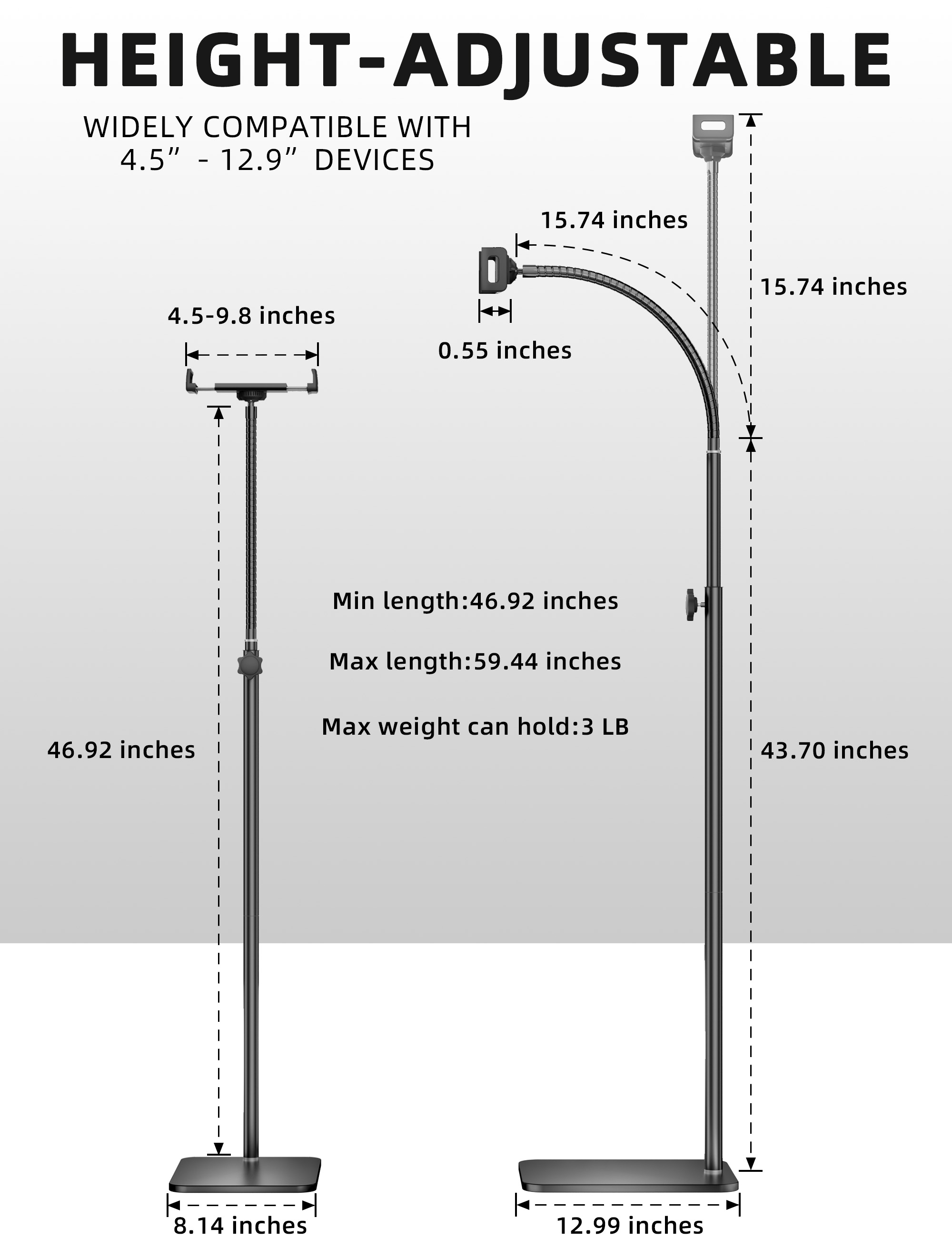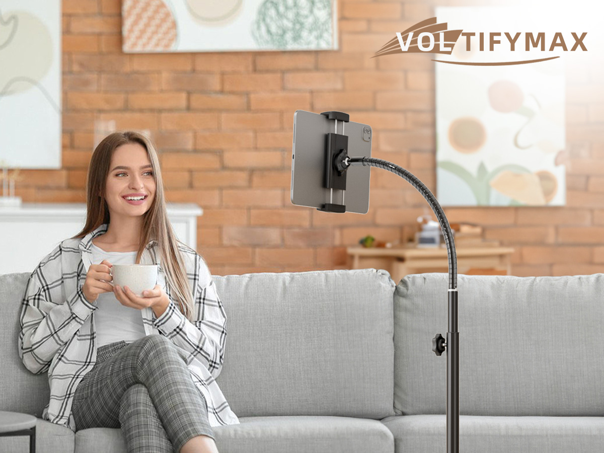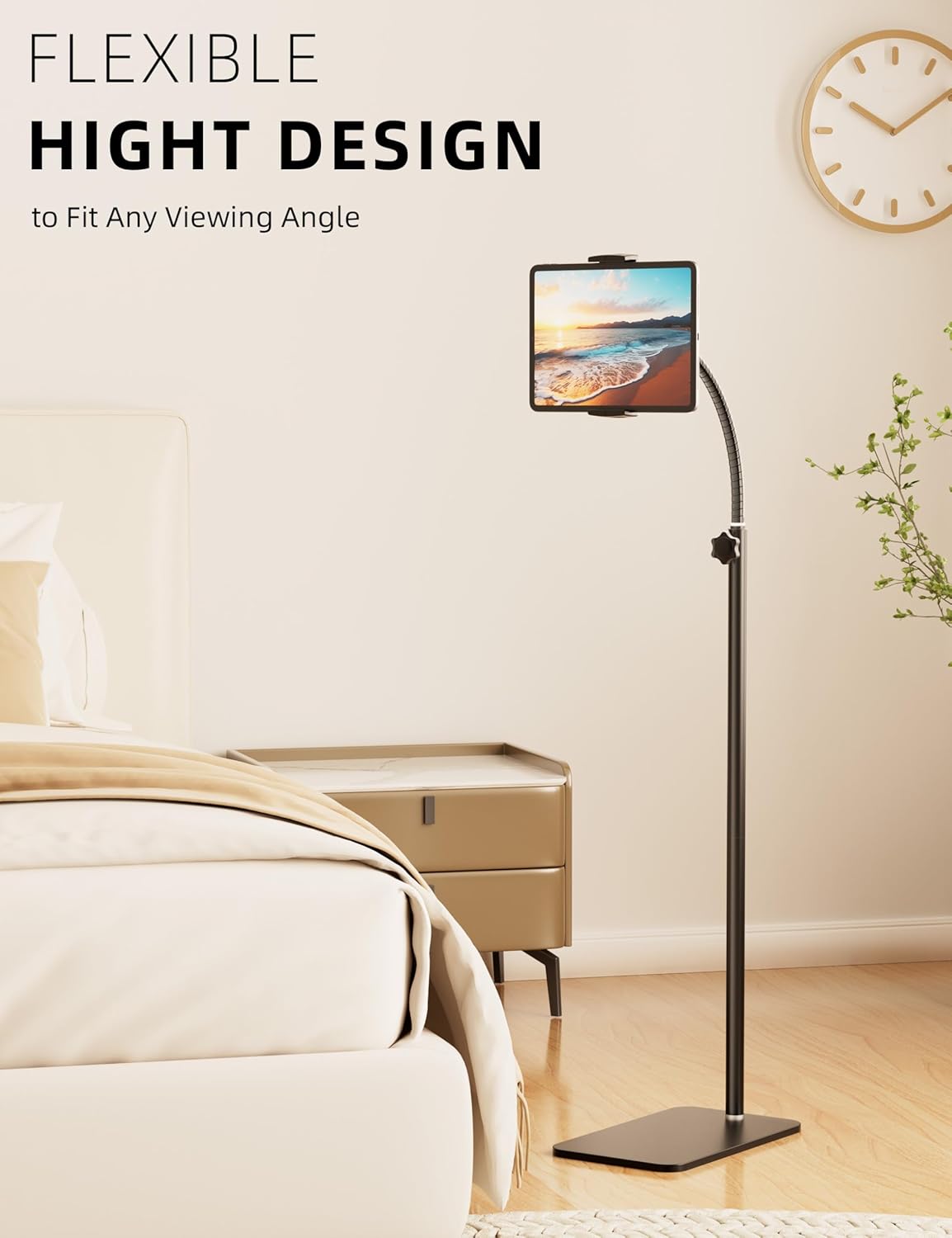 Easily Adjustable Height: Tablet stand with a height range of 46.92 inches to 59.44 inches, this tablet holder effortlessly accommodates your preferred viewing positions, whether you're lying down, sitting, standing, or any position
