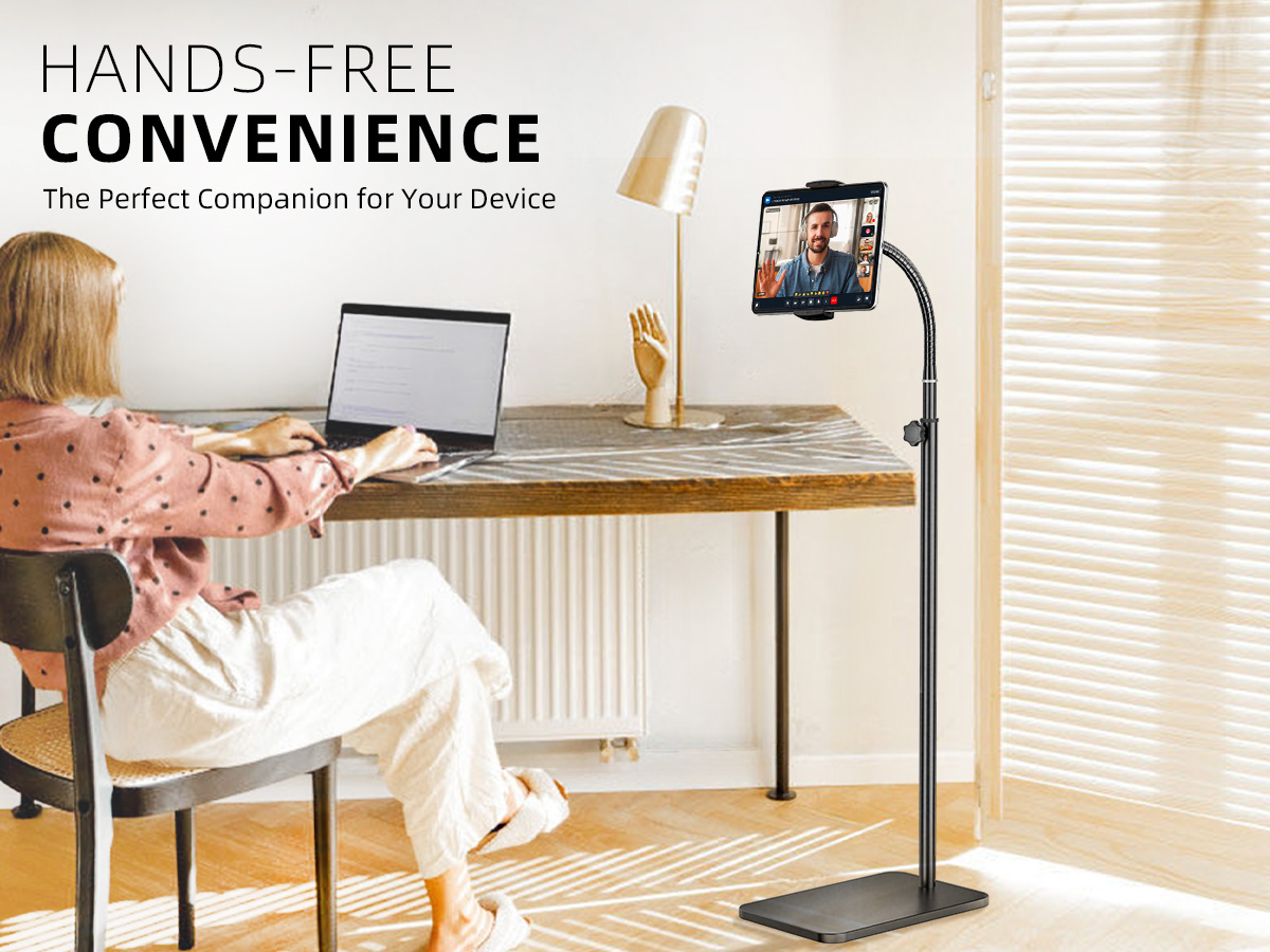 Free Your Hands: The gooseneck holder stand design offers maximum flexibility to meet your personalized viewing angle needs, while the universal ball head on the clamp allows for 360-degree rotation. It's a hands-free solution for various scenarios such as sofa, bed, kitchen, meetings, watching videos, and reading. This tablet floor stand is suitable only for reading and watching, not for typing purposes