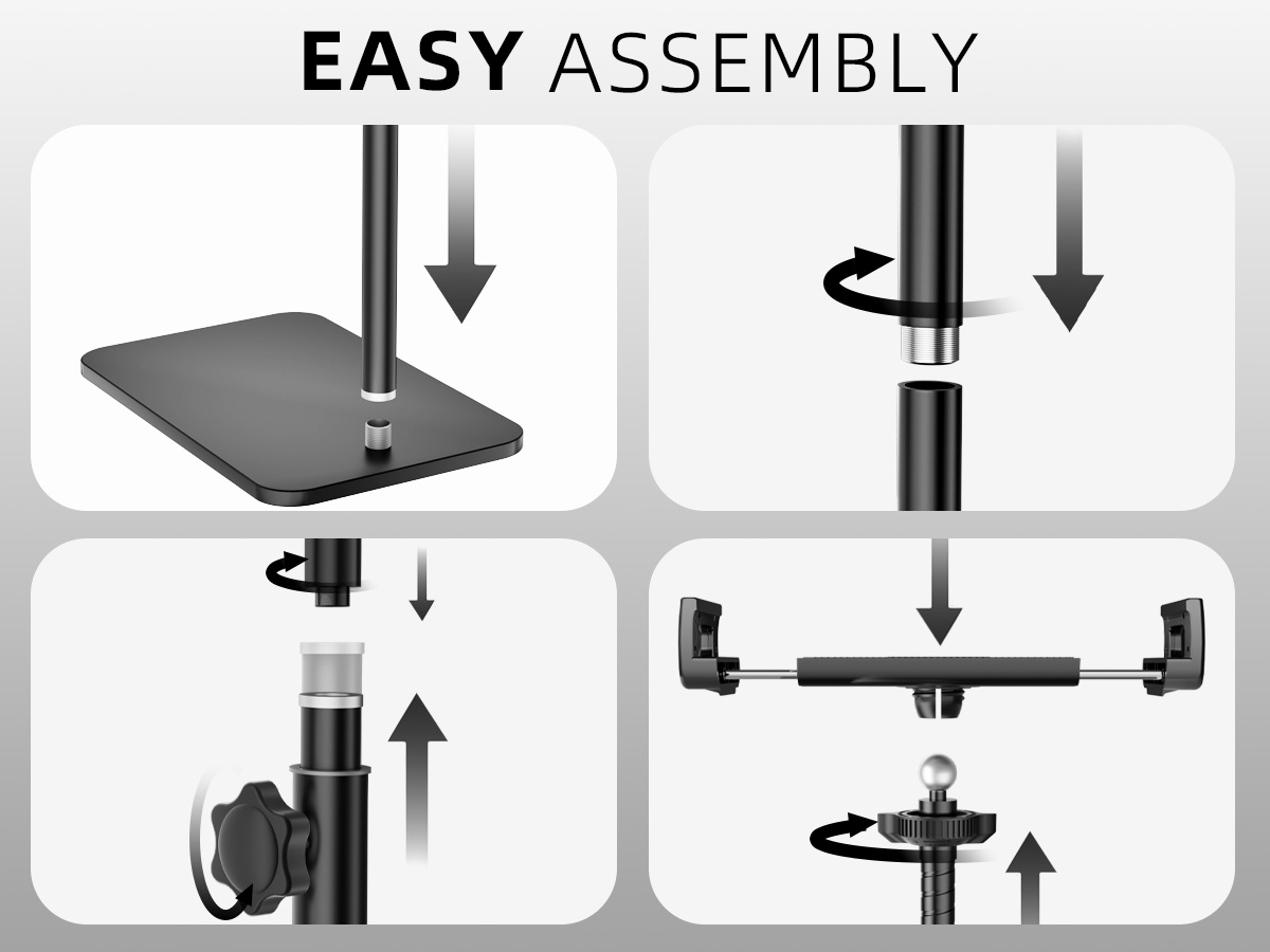 Wide Compatibility: Our tablet floor stand features a newly upgraded metal pull clamp, designed to accommodate a wide range of smartphone and tablet devices from 4.7 to 13 inches, ensuring sturdiness and durability. Compatible with iPad Mini, Air, Pro, Galaxy Tab, Kindle, and cell phones. Please refer to the list of compatible devices and phone models above